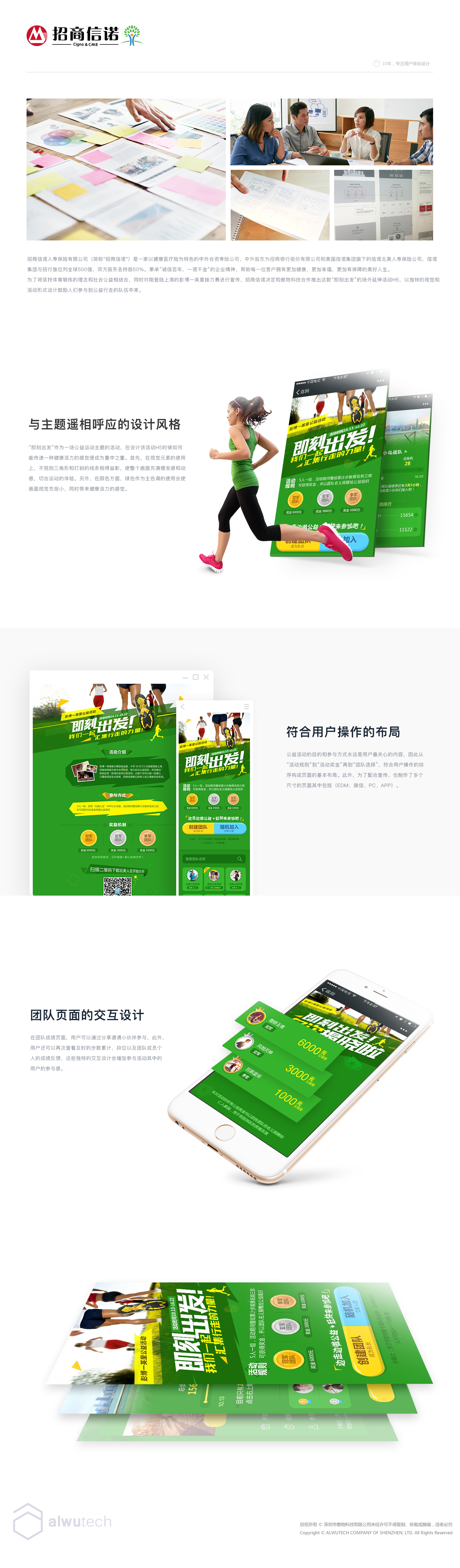 招商信诺秉承“诚信百年,一诺千金”的企业精神,为了将坚持体育锻炼的理念和社会公益相结合,帮助每一位客户拥有更加健康,更加幸福,更加有保障的美好人生。 以独特的视觉和活动形式设计鼓励人们参与到公益行走的队伍中来。